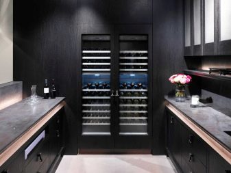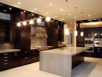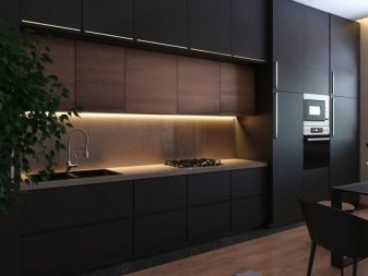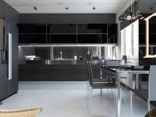 ในการออกแบบห้องครัวที่ทันสมัยคุณมักจะพบการตกแต่งในเฉดสีเข้มซึ่งดึงดูดด้วยความลึกและความลึกลับ การตกแต่งภายในในการออกแบบนี้ดูงดงาม แต่ข้อเสียอย่างเดียวคือพื้นที่ของห้องถูกถอดออกไป ดังนั้นก่อนที่จะตัดสินใจเลือกสีเข้มเป็นสิ่งสำคัญที่ต้องคำนึงถึงความแตกต่างมากมายตั้งแต่ขนาดของห้องครัวไปจนถึงระดับของแสง