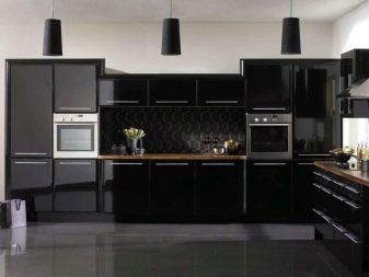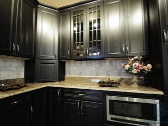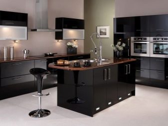 นอกเหนือจากนั้น ปัญหาที่พบบ่อยคือการปรากฏตัวของลายนิ้วมือบนเงา. ดังนั้นหากเจ้าของบ้านต้องการดูห้องครัวในสีเข้มพวกเขาควรจะเตรียมพร้อมสำหรับความจริงที่ว่าคุณจะต้องถูตู้อย่างต่อเนื่องตารางที่มีสารขัดพิเศษและดำเนินการทำความสะอาดบ่อยครั้ง ในฤดูหนาวด้วยสภาพอากาศที่มีเมฆมากการตกแต่งภายในในที่มืดอาจส่งผลกระทบต่ออารมณ์และนำไปสู่ภาวะซึมเศร้า แก้ไขสถานการณ์ในกรณีนี้คุณสามารถใช้การตกแต่งห้องในสีสดใส ดีสำหรับสิ่งนี้ทั้งอุปกรณ์ขนาดเล็ก (รูปแกะสลัก, แจกัน) และกระเบื้องเพดานหรือวอลล์เปเปอร์
