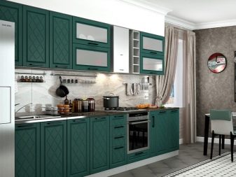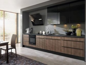 นอกจากนี้ชุดครัวในสีเข้มสามารถแตกต่างกันในวัสดุและสไตล์ ผลิตภัณฑ์ที่ทำจากวัสดุธรรมชาติเป็นที่นิยมมากในการออกแบบที่ทันสมัย แต่สีของพวกเขามี จำกัด สำหรับโมดูลพลาสติกพวกเขาจะถูกนำเสนอในหลากหลายสี