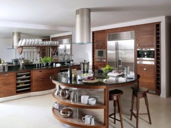 - เกาะ พวกเขาช่วยให้คุณสามารถจัดระเบียบพื้นที่ได้อย่างมีเหตุผลด้วยรูปแบบนี้ส่วนหลักของเฟอร์นิเจอร์จากครัวจะถูกนำไปยังศูนย์กลางของห้อง พวกเขาจะแนะนำให้ซื้อสำหรับห้องครัวขนาดที่มีอย่างน้อย 15 ตารางเมตรและรูปร่างอยู่ใกล้กับสี่เหลี่ยมผืนผ้าหรือสี่เหลี่ยม