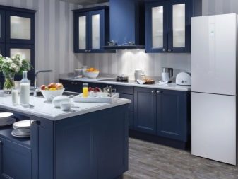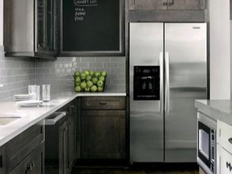 หลายคนชอบสีเข้มในการออกแบบห้องครัวดังนั้นแม่บ้านมักเลือกทั้งสีน้ำตาลเข้มและสีอันสูงส่งเช่นสีน้ำเงินมรกตสีเทาเข้มระหว่างการออกแบบ พวกเขาผสมผสานอย่างลงตัวในการตกแต่งภายในด้วยตู้เย็นสีขาว สิ่งเดียวที่เมื่อเลือกเฉดสีควรคำนึงถึงขนาดและรูปร่างของห้องเนื่องจากในพื้นที่ จำกัด พื้นผิวที่มืดจะเพิ่มความมืดให้กับการตกแต่งภายใน สำหรับห้องครัวขนาดเล็กการใช้สีอ่อนและสีเข้มถือเป็นตัวเลือกที่ดีที่สุด ตัวอย่างเช่นคุณสามารถทำให้ผนังเป็นหิมะขาวและพื้นมืดห้องครัวในกรณีนี้ถูกเลือกโทนสีอ่อนกว่าพื้น
