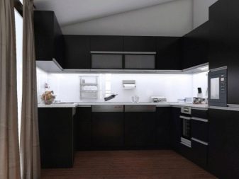 ในชุดครัว (ในพื้นที่ทำงาน) คุณต้องวางแบ็คไลท์ด้วยซึ่งจะช่วยให้แสงสามารถเล่นบนพื้นผิวสะท้อนแสงของเฟอร์นิเจอร์