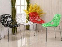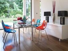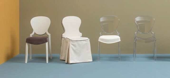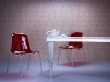 เก้าอี้พลาสติกสามารถตกแต่งได้ด้วยตัวเอง - แน่นอนว่านี่เป็นข้อดีอีกอย่าง นอกจากนี้โมเดลเทอร์โมพลาสติกยังสามารถพิมพ์หรือแกะสลักได้ โมเดลที่มองไม่เห็นขนาดเล็กสามารถเปลี่ยนแปลงภายในห้องครัวได้อย่างมีนัยสำคัญและเปลี่ยนรูปลักษณ์ของมันเพื่อสร้างบรรยากาศของความสว่าง