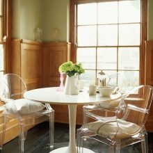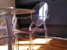 หนึ่งในคุณสมบัติหลักคือเก้าอี้มีความโปร่งใสจึงจะนำความสว่างให้กับการตกแต่งภายในของห้องครัวและจะไม่มีรายละเอียดเกินพิกัด เก้าอี้ขนาดใหญ่มักจะเกะกะทำให้ดูมีน้ำหนัก มันก็เพียงพอที่จะแลกเปลี่ยนผลิตภัณฑ์ขนาดใหญ่สำหรับเก้าอี้ในครัวที่โปร่งใสทันทีที่มีการเปลี่ยนแปลงการตกแต่งภายใน