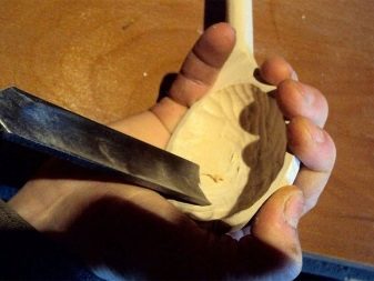 - ถัดไปคุณสามารถเริ่มต้นสร้างหลุมใน scoop - สำหรับเรื่องนี้เศษไม้ชิ้นเล็ก ๆ จะถูกขูดด้วยสิ่วเบา ๆ มันเป็นสิ่งสำคัญมากในการตรวจสอบความหนาของช้อน - มันไม่ควรออกมาผอมเกินไป