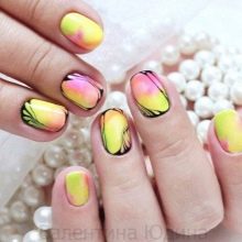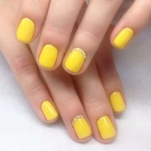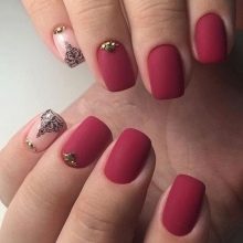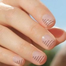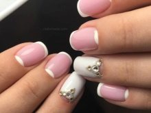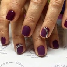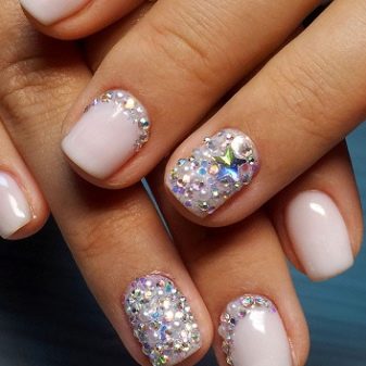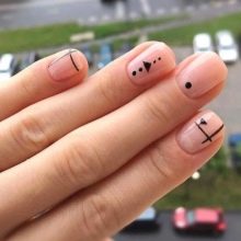 เล็บสั้นเหมาะสำหรับการรวบรวมความคิดของการทำเล็บแบบด้าน กฎสำคัญในกรณีนี้คือองค์ประกอบทางปริมาตรขั้นต่ำ เหมาะที่จะใช้ rhinestones และประกายเล็ก ๆ
