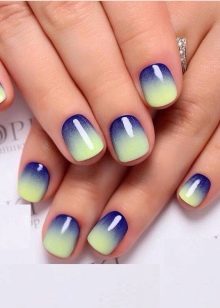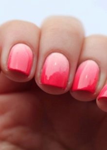 มันจะเรียกว่าทำเล็บผลกระทบ ombre สาระสำคัญของรูปแบบนี้คือเล็บมีการเคลือบเงาด้วยสีและเฉดสีที่แตกต่างกัน ชิงช้าสีกำลังตกหลุมรักฉันต้องการทำเล็บครั้งแล้วครั้งเล่าแม้ว่าจะไม่มีอะไรพิเศษในเรื่องนี้