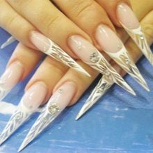 การออกแบบที่แพงที่สุดในปัจจุบันคือเล็บที่ทาสีด้วยมือ มันสามารถทำได้โดยใช้เทคนิคที่แตกต่างกันซึ่งในการวาดภาพสีน้ำเป็นที่นิยมโดยเฉพาะอย่างยิ่งกับลูกค้า นอกจากเธอแล้วสิ่งสำคัญคือการออกแบบตัวเลื่อนซึ่งนอกเหนือจากการตกแต่งแล้วยังช่วยเสริมสร้างเล็บให้แข็งแรง การปั๊ม, ผง, rhinestones และคริสตัลเป็นที่นิยม เกี่ยวกับหลังเป็นมูลค่า noting: พวกเขาจะต้องได้รับยาและวางตำแหน่งตามเข็มนาฬิกา คุณสามารถให้รูปไข่และตกแต่งเล็บของคุณด้วยลูกปาสีสันสติ๊กเกอร์ทำน้ำ