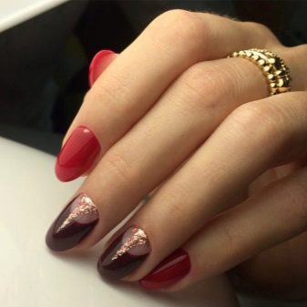 สำหรับเทคนิคอื่น ๆ (คลาสสิก, ฝรั่งเศส, ทำเล็บมือมูน, ombre, ม่าน, เศษแก้วและผง) เล็บของแหวนและนิ้วกลางกลายเป็นสถานที่ที่มีความสำคัญ