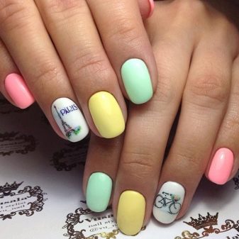 วันนี้การทำเล็บในอุดมคติมักใช้สองเฉดสี ในเวลาเดียวกันวานิชที่เลือกจะถูกเน้นเพื่อเน้นเสียงและพิมพ์บนมันโดยใช้สีหลัก (พื้นหลัง) โทนสีพาสเทลที่ดีที่สุดคือสีชมพูสีน้ำเงินและมินต์ นอกจากพวกเขาแล้วเฉดสียอดนิยมยังเป็นมาร์แชลล์ไวน์มะเขือยาวและมรกต จานสีที่มีความเป็นกลางระดับเมกะของสี (ดำ, ขาว, เทา, เงิน)