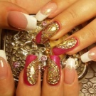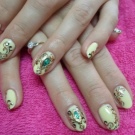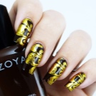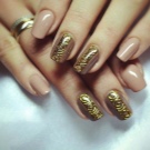 ทองเป็นสีของความหรูหราและเก๋ไก๋ดังนั้นจึงเป็นการดีกว่าที่จะใช้เวลาทำเล็บด้วยการออกไปเที่ยวหรือปาร์ตี้ เมื่อรวมกับสีดำหรือน้ำเงินก็ดูเก๋ไก๋เป็นพิเศษ