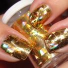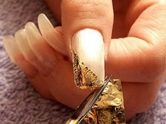 - ฟอยล์ที่ถูกเก็บเกี่ยวนั้นบางมากและไม่มีน้ำหนัก มันถูกปล่อยออกมาในขวดในรูปแบบของชิ้นเล็ก ๆ โครงสร้างคล้ายกับแผ่นทอง องค์ประกอบถูกนำไปใช้อย่างระมัดระวังด้วยแหนบกับพื้นผิวของเล็บปกคลุมด้วยเจลพิเศษหรือกาวตามภาพ รูปลักษณ์นี้ช่วยสร้างรูปแบบแสงสะท้อนแห่งอนาคตอันน่าทึ่ง