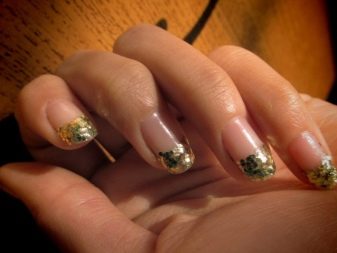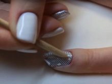 การทำเล็บแบบคลาสสิกนั้นไม่ได้ใช้กับฟอยล์ สามารถสร้างภาพตกแต่งที่น่าทึ่งโดยใช้มันสำหรับแต่ละองค์ประกอบหรือเป็นพื้นหลัง ไม่ว่าในกรณีใดการทำเล็บทางธุรกิจที่เรียบง่ายจะทำให้เกิดเงาโลหะ