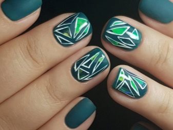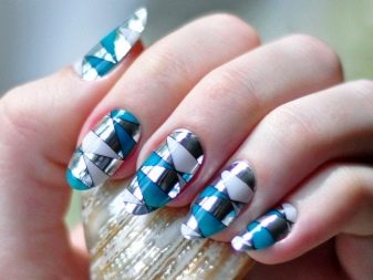 รูปแบบทางเรขาคณิตในการทำเล็บมีความเกี่ยวข้องตลอดเวลาและทุกโอกาส ด้วยความช่วยเหลือของพวกเขาผู้เชี่ยวชาญสร้างตัวเลือกแท่นยืน, ออกแบบเพื่อการเผยแพร่หรือเหมาะสมกับสไตล์ธุรกิจ ฟอยล์เหมาะสำหรับวัตถุประสงค์เหล่านี้ เส้นโลหะที่ชัดเจนเพิ่มความกระชับย้อมสีด้วยเงาโลหะที่หรูหรา ยิ่งไปกว่านั้นขึ้นอยู่กับเฉดสีฟอยล์ที่นำเสนอองค์ประกอบของความหรูหราหรือความยับยั้งชั่งใจและความสง่างามในภาพ