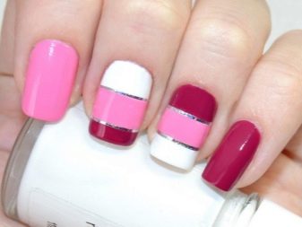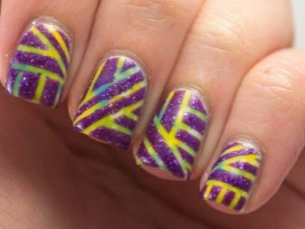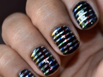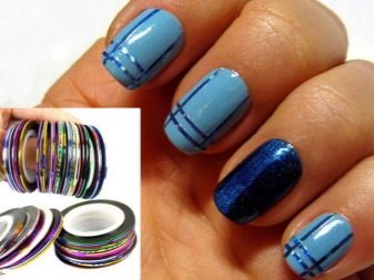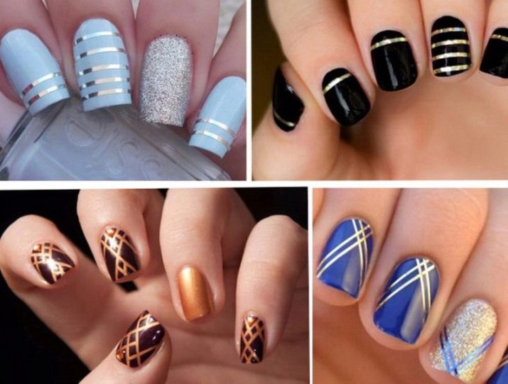 - แถบ เทปฟอยล์ที่มีความกว้าง 2 ถึง 3 มม. มีให้บริการในรูปแบบม้วน พวกเขาจะเรียกว่าเทปทำเล็บ การตกแต่งนี้ช่วยให้ไม่เพียง แต่การตกแต่งเล็บ แต่ยังทำหน้าที่เป็นลายฉลุในกรณีของการสร้างการออกแบบทางเรขาคณิต