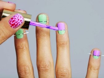 - บนเล็บที่แห้งสนิทจะใช้กาวพิเศษ พวกเขาสามารถครอบคลุมแผ่นหรือวาดรูปแบบด้วย เมื่อใช้เทคนิคนี้เป็นครั้งแรกเพื่อความเรียบง่ายจะดีกว่าถ้าซื้อผลิตภัณฑ์ที่เปลี่ยนสีเมื่อแห้ง
