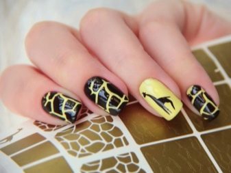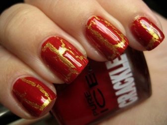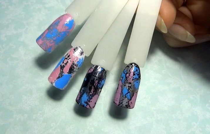 เพื่อให้ได้ผลกระทบของรอยแตกร้าวก็จะเสนอให้ใช้ฟอยล์โอน ตอนนี้ผู้ผลิตเสนอพันธุ์ craquelure พิเศษ ผู้เชี่ยวชาญแนะนำให้เลือกเฉดสีตัดกันเป็นพื้นหลัง สำหรับพวกเขาการออกแบบจะออกมาสดใสและน่าตื่นเต้นยิ่งขึ้น ด้านล่างนี้เป็นคำสั่งทีละขั้นตอนที่ง่ายที่สุดสำหรับการทำเล็บมือที่นิยมชมชอบด้วยมือของคุณเอง