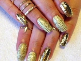 การออกแบบเล็บของปีล่าสุดได้รับการปรับปรุง การเกิดขึ้นของวัสดุใหม่ก่อให้เกิดเทคนิคใหม่สำหรับการทำเล็บ กระดาษ Metallized ได้รับความนิยมในหมู่แฟชั่นมายาวนานด้วยความช่วยเหลือของมันตัวเลือกทั้งแบบคลาสสิคและอุกอาจ