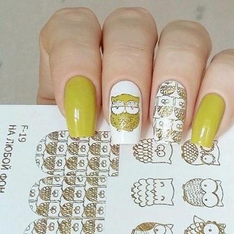 - ฟอยล์นูน มีพื้นผิวที่แตกต่างจากประเภทอื่น ตามกฎแล้วผู้ผลิตจะปล่อยในเวอร์ชันแผ่นงานหรือเป็นสติ๊กเกอร์ อาจารย์ใช้ลุคที่คล้ายคลึงกันในการออกแบบเล็บแต่ละอัน