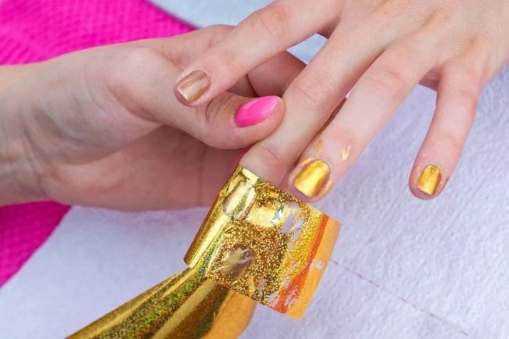 ฟอยล์ใช้สำหรับตกแต่งส่วนต่าง ๆ ของการทำเล็บ ตัวอย่างเช่นหากคุณใช้เจลในการทำซ้ำลวดลายสามมิติและปล่อยให้แห้งแล้วนำฟิล์มที่เคลือบด้วยโลหะไปใช้กับมันดังนั้นในขั้นตอนสุดท้ายคุณจะได้รับการตกแต่งที่ดูเหมือนชิ้นส่วนแม่พิมพ์ ความคิดนี้มักถูกใช้โดยช่างฝีมือมืออาชีพในการสร้างรูปลักษณ์ยามเย็นอันเป็นเอกลักษณ์