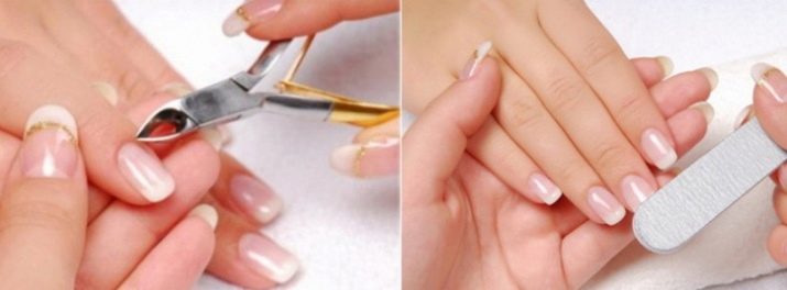 ในระยะแรกคุณต้องเตรียมเล็บด้วยตัวเอง เมื่อต้องการทำสิ่งนี้ให้ทำตามขั้นตอนการทำความสะอาดและการทำหนังกำพร้า ต่อไปพวกเขาแต่งเล็บแต่ละแผ่นแล้วบดเป็นไฟล์พิเศษ