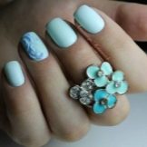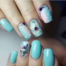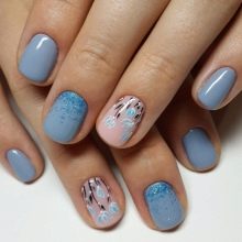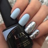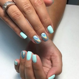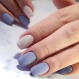 การแก้ปัญหาดังกล่าวจะดึงดูดนักแฟชั่นยุคใหม่ ในฤดูกาลนี้ผู้ผลิตได้ปล่อยวัสดุฟอยล์หลายชนิดสำหรับตกแต่งแผ่นเล็บ แน่นอนว่าเนื้อสัมผัสนั้นมีความสร้างสรรค์ดังนั้นคุณต้องเลือกอย่างรอบคอบสำหรับการทำเล็บสีน้ำเงิน การตกแต่งนี้ดูเป็นต้นฉบับไม่เพียง แต่กับเล็บยาว: มันเหมาะสำหรับแผ่นเล็บที่มีความยาว นอกจากนี้มันเหมาะสำหรับเล็บขยาย ไม่เพียง แต่จะใช้ตัวเลื่อนฟอยล์เพื่อการตกแต่ง: ในฤดูกาลนี้มีการแปลฟอยล์กดและฟิล์มความร้อนได้มากขึ้นกว่าเดิม
