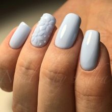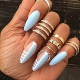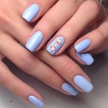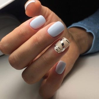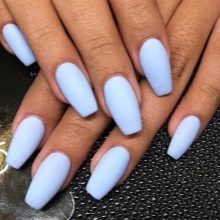 ฤดูกาลนี้เชิญชวนให้ผู้หญิงตัดสินใจเลือกลำดับความสำคัญของพวกเขาเลือกรูปร่างที่ดีที่สุดสำหรับเล็บของพวกเขา อย่างไรก็ตามไม่ว่ารูปร่างที่แหลมคมจะดูสวยงามแค่ไหนการทำเล็บก็ดูก้าวร้าว ไม่เสมอไปที่จะช่วยให้คุณสามารถสร้างภาพผู้หญิงที่ละเอียดอ่อนได้อย่างกลมกลืนอย่างกลมกลืนเนื่องจากความอ่อนโยนของสีฟ้า สไตลิสต์ให้ความสนใจกับความจริงที่ว่าเล็บที่มีความยาวและรูปร่างแตกต่างกันเป็นที่ยอมรับไม่ได้: แผ่นเล็บทั้งหมดควรมีรูปร่างเหมือนกัน