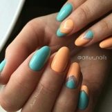ตัวอย่างเช่นในกรณีที่คุณไม่สามารถตกแต่งสีฟ้าที่มีรูปแบบสีเขียวที่เป็นพิษ: สีของสารเคลือบเงาสีเขียวควรอยู่ในลำคอและสวยงาม หากสีต่างกันกันเล็บสีเขียวสีน้ำเงินเดียวกันจะดูสดและสวยงาม การผสมที่ยอมรับไม่ได้กับสีแดงเลือด, สีนีออน, รวมถึงการผสมของเฉดสีฟ้าที่แตกต่างกันในอุณหภูมิ วิธีการออกแบบทำเล็บนี้ทำให้เขาขาดความอ่อนโยนและความเป็นผู้หญิง