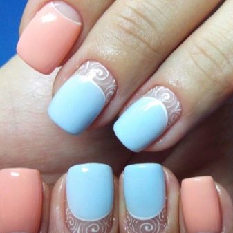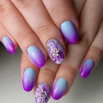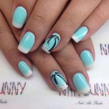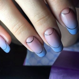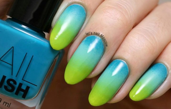 การออกแบบนี้หมายถึงการออกแบบไล่ระดับสี ดำเนินการโดยใช้เจลขัดหลายเฉดสีสร้างการเปลี่ยนจากโทนสีน้ำเงินหลักไปเป็นสีอื่นได้อย่างราบรื่น ผลกระทบของการออกแบบนี้เป็นต้นฉบับและพิเศษเสมอ ในลักษณะที่ปรากฏของพวกเขาพวกเขาค่อนข้างจะชวนให้นึกถึงการเคลือบสีกิ้งก่าซึ่งสามารถเปลี่ยนสีเดิมอย่างรุนแรงเมื่อเย็นหรือร้อน บ่อยครั้งที่ฐานดังกล่าวได้รับการตกแต่งในบางช่วงเวลาของปี ตัวอย่างเช่นช่วยให้คุณตกแต่งเล็บใต้ทะเลหรือสร้างเอฟเฟกต์หิมะ