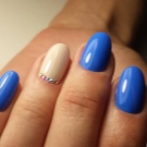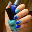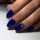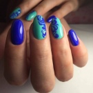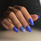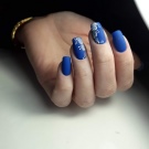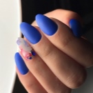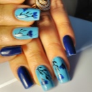 สีฟ้าถือว่าเป็นสีสดใสหรือสีเข้มในจานสีซึ่งขึ้นอยู่กับปริมาณของสีดำในนั้นเนื่องจากความสว่างมันจึงมีความต้องการรูปร่างของเล็บและโดยเฉพาะความยาว ตัวอย่างเช่นมันจะดูดีสำหรับเล็บสั้นแม้ว่ารูปร่างจะค่อนข้างง่าย ในเวลาเดียวกันขอบสามารถถูกตีด้วยเทคนิคการออกแบบที่หลากหลายดังนั้นไม่เพียง แต่ทำให้ติดขัด แต่ยังยืดนิ้วของตัวเอง
