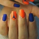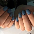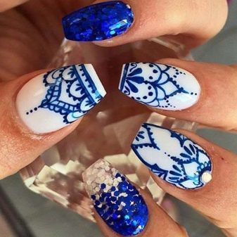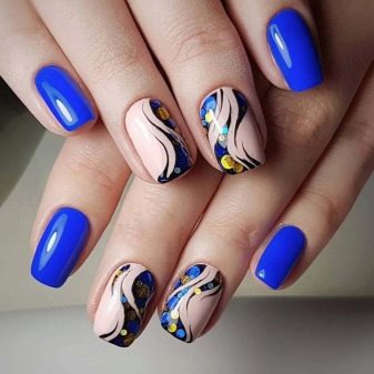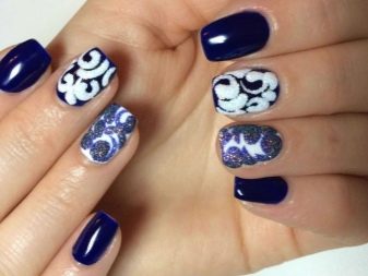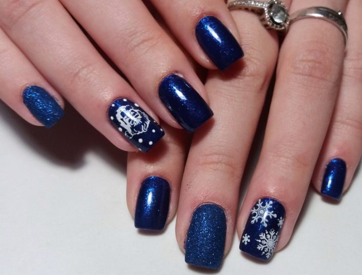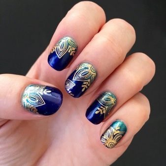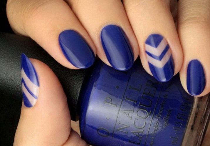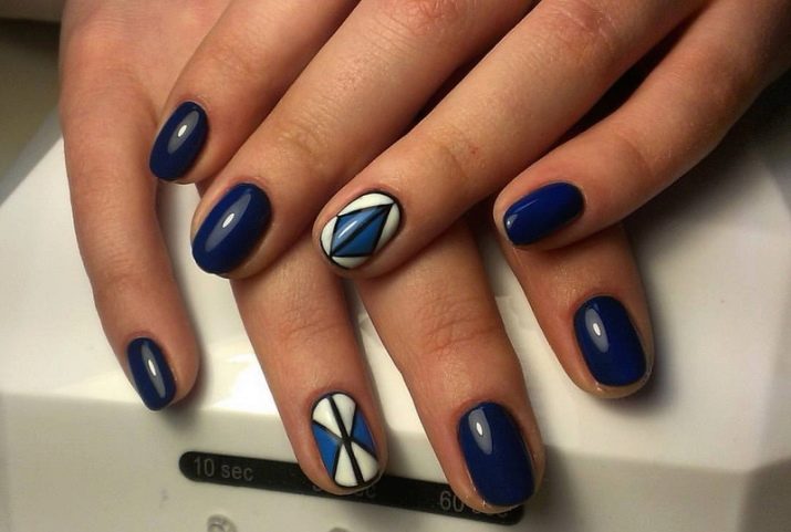 สำหรับแนวคิดที่ดีที่สุดสำหรับการตกแต่งเน้นเสียงนอกจากสามเหลี่ยมและแถบแนวตั้งแล้วมันอาจเป็นองค์ประกอบอื่น ๆ ของเรขาคณิตลวดลายดอกไม้และตัวเลือกที่มีลวดลายชาติพันธุ์บนพื้นหลังสีน้ำเงิน การตกแต่งที่เหมาะสำหรับการทำเล็บคือสติ๊กเกอร์หรือฟอยล์ทำเล็บด้วยลูกไม้ มันเป็นไปได้ที่จะทำเครื่องประดับปั๊มเช่นเดียวกับภาพวาดบนหน้าจอในสำเนียงของมือ ชุดรูปแบบที่ดีที่สุดของฤดูกาลคือรูปภาพบนมือที่แสดงถึงนักจับฝัน, จิ้งจอก, ใบไม้, เม็ดฝน, ภาพร่างเมืองในฤดูใบไม้ร่วง
