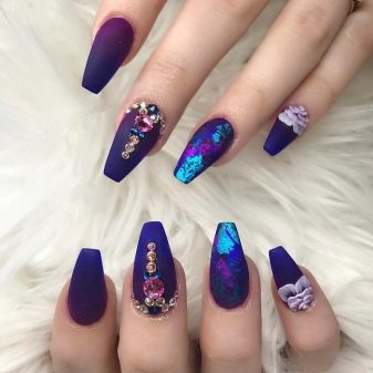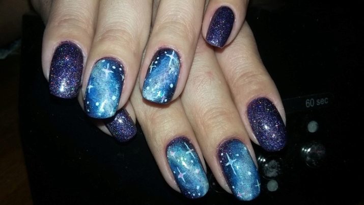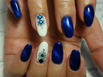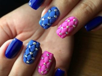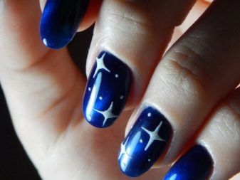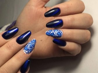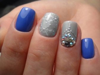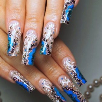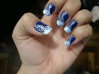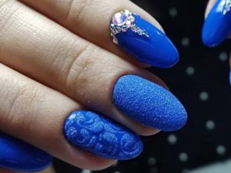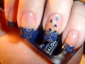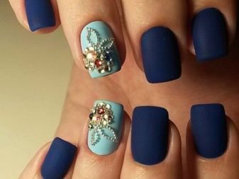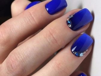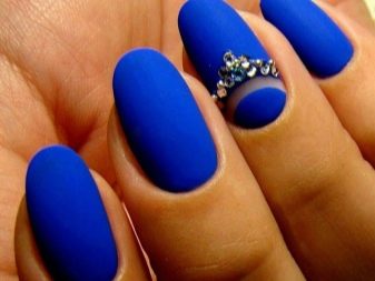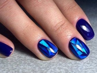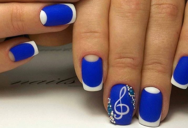 มีคนเพียงไม่กี่คนที่คำนึงถึงความจริงที่ว่าเฉดสีฟ้าที่เข้มกว่านั้นดูกลมกลืนกับธนูหญิงมากขึ้น ผู้เชี่ยวชาญบางคนที่ชื่นชอบการทำงานกับ rhinestones พบว่ามันค่อนข้างเหมาะสมที่จะอวดเล็บสำเนียงที่มีความเงางาม เป็นผลให้แทนที่จะเป็นสถานะสูงทำเล็บสีฟ้ากลายเป็นฉูดฉาดและแม้กระทั่งดิสโก้ อย่างไรก็ตามหากในงานปาร์ตี้สิ่งนี้ยังคงมีความทนทานต่อการมองในชีวิตประจำวันการออกแบบดังกล่าวจะไม่สามารถใช้งานได้ แต่อย่างใด