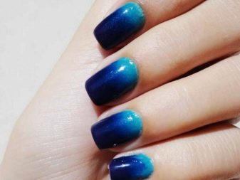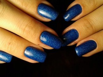 ตัวเลือกที่ดีที่สุดสำหรับเจลขัดวันนี้ถือว่าเคลือบและมัน พวกเขาช่วยให้คุณเปิดเผยความงามของสีน้ำเงินมากขึ้นและยังเป็นฐานที่ดีสำหรับการตกแต่งหรือเทคนิคการทำเล็บที่รู้จักกันดี มีสีคล้ำหนาแน่นพวกเขาประหยัดเพราะวัสดุชั้นหนึ่งมักจะครอบคลุมเล็บธรรมชาติอย่างสมบูรณ์ ตัวเลือกชิมเมอร์ไม่สามารถเรียกได้ว่าหนาแน่น: เคลือบเงาดังกล่าวต้องใช้หลายชั้น อย่างไรก็ตามพวกเขาสามารถให้ฐานสีฟ้าที่แตกต่างกัน