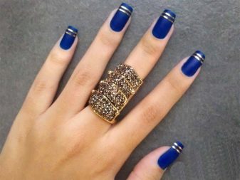 ความสนใจของเทรนด์แฟชั่นในปัจจุบันถูกดึงดูดให้ผู้หญิง ดังนั้นทุกอย่างในการออกแบบทำเล็บสีน้ำเงินควรจะเต็มไปด้วยความเป็นผู้หญิง เนื่องจากสีนั้นต้องการไม่เพียงเลือกเฉดสีที่เหมาะสม แต่ยังรวมถึงองค์ประกอบตกแต่งอื่น ๆ ด้วย มันเป็นสิ่งสำคัญที่จะต้องพิจารณาอย่างรอบคอบการตกแต่งเล็บและมีความสัมพันธ์กับข้อเสนอที่ดีที่สุดของฤดูกาล