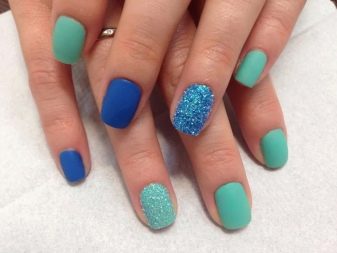 ทำเล็บมือมิ้นต์บลูยังดูสวยงามเช่นเดียวกับการแก้ปัญหาโดยใช้เฉดสีของกลุ่มสีเขียวสีน้ำเงิน คุณสามารถรวมสีน้ำเงินกับสีเบจหรือทราย อย่างไรก็ตามในกรณีใด ๆ ความคมชัดควรทำให้สีหลักอ่อนลง แต่ไม่สามารถแข่งขันได้