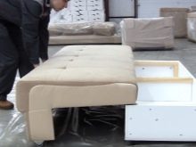 ควรคำนึงถึงความต้องการบรรจุภัณฑ์ของแต่ละส่วนแยกต่างหาก ครีบและมุมแข็งจะต้องวางด้วยกระดาษแข็งและห่อพื้นผิวที่อ่อนนุ่มด้วยกระดาษฟอยล์ แต่ละชั้นได้รับการแก้ไขด้วยเทปรัดจะถูกวางไว้ในภาชนะที่เตรียมไว้เป็นพิเศษซึ่งจะต้องปิดให้สนิท สิ่งนี้จะช่วยในการประกอบโซฟาอย่างรวดเร็วเนื่องจากทุกสิ่งที่คุณต้องการจะอยู่ในมือ หากคุณทำตามขั้นตอนทั้งหมดอย่างถูกต้องโซฟาจะไม่กลัวสิ่งสกปรกและความชื้น เขาทนอย่างใจเย็นไม่ให้อิทธิพลภายนอกที่แม่นยำเกินไป