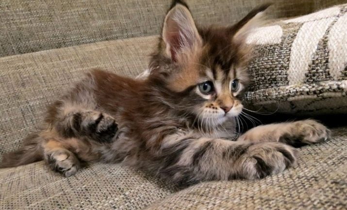 ตามกฎ ความแตกต่างที่ชัดเจนสามารถสังเกตได้เมื่อเมนคูนมีอายุ 3 เดือน บุคคลที่มีสายเลือดที่มีน้ำหนัก 100-150 กรัมเกิดมากับลูกแมวปกติที่มีพารามิเตอร์ 80-100 กรัม เมนคูนเติบโตและพัฒนาได้เร็วขึ้นมันมีการใช้งานมากขึ้นและคุ้นเคยกับฟีดปกติก่อนหน้านี้ นอกจากนี้ดวงตาของเขาเปิดก่อนหน้านี้