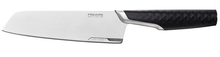 - Fiskars Titanium นี่คือโซลูชั่นครัวนวัตกรรม ผู้ผลิตพยายามรวมฟังก์ชันที่จำเป็นและโซลูชันการออกแบบที่เป็นนวัตกรรม ใบมีดทำจากไทเทเนียมซึ่งเป็นวัสดุที่ช่วยลดน้ำหนักของโครงสร้างผลิตภัณฑ์ได้อย่างมาก การปฏิวัติเทคโนโลยี LZR-EDGE เกี่ยวข้องกับการใช้อนุภาคไทเทเนียมคาร์ไบด์บนขอบตัด ขอบคุณพวกเขาขอบยังคงคมชัดเป็นเวลานาน การออกแบบที่ทันสมัยพร้อมบุด้วยสเตนเลสสตีลช่วยให้คุณได้รับความสมดุลอย่างสมบูรณ์แบบ การออกแบบผลิตภัณฑ์เสริมด้วยมือจับที่ถูกหลักสรีรศาสตร์