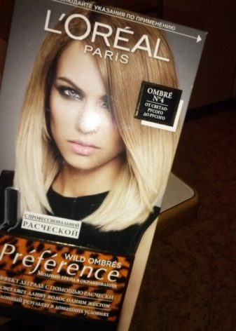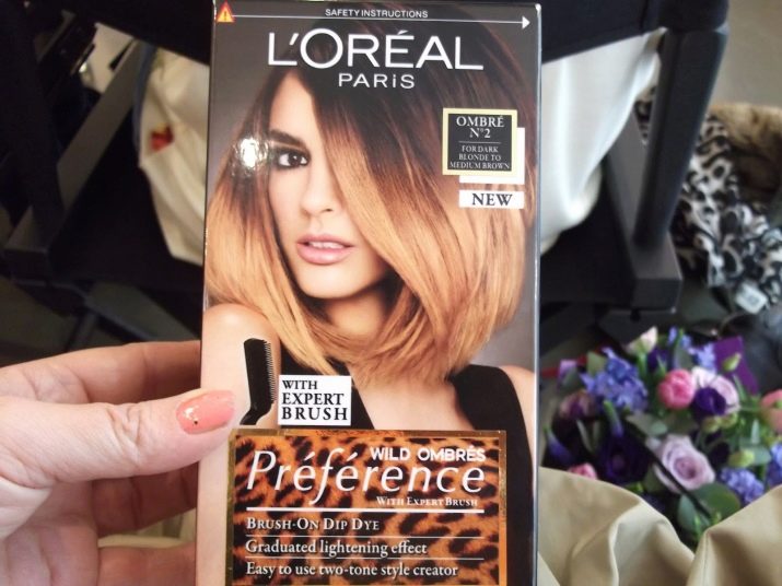 Loreal Paris ชอบสัตว์ป่า Ombres ผู้ผลิตสีนี้อยู่ในตลาดเป็นเวลานานและได้สร้างตัวเองในด้านบวก ชุดย้อมสี สีย้อม, สารเร่งปฏิกิริยา, ผง, ครีมนวดผม, แปรงพิเศษซึ่งคุณสามารถปรับความสูงของสีถุงมือและคำแนะนำ