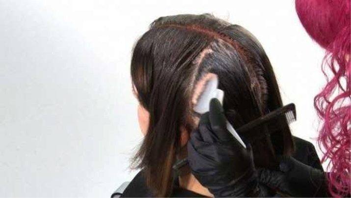 - ผมควรจะเป็น ชื้นเล็กน้อยเพื่อให้สีเข้ากัน มันเป็นสิ่งจำเป็นที่จะแบ่งออกเป็นส่วนเท่า ๆ กันและรักษาความปลอดภัยคนที่ไม่ได้ใช้กับวงยางใกล้กับราก