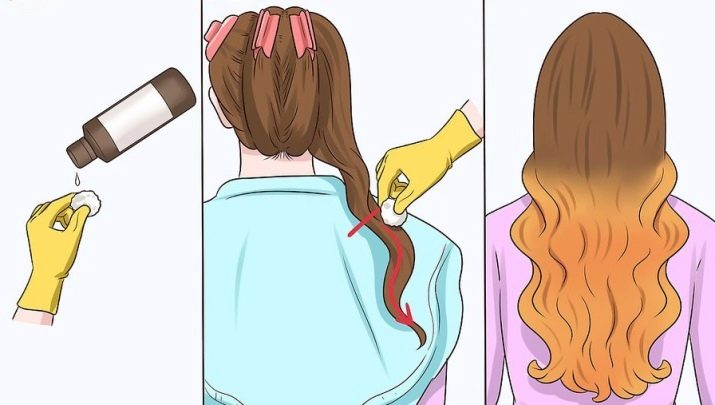 กระบวนการในการใช้สารละลายนี้ทำด้วยสำลีก้อน มันเป็นสิ่งจำเป็นเพื่อหล่อเลี้ยงขนแกะในองค์ประกอบและวาดตามหยิกที่ควรจะเบา มันจะต้องใช้อย่างถูกต้อง: จากรากถึงปลาย นอกจากนี้แต่ละสีที่พันกันจะถูกห่อด้วยกระดาษฟอยล์เพื่อหลีกเลี่ยงการย้อมสีอื่น ๆ ถัดไปให้ทำตามขั้นตอนต่อไปด้วยลอนที่เหลือ