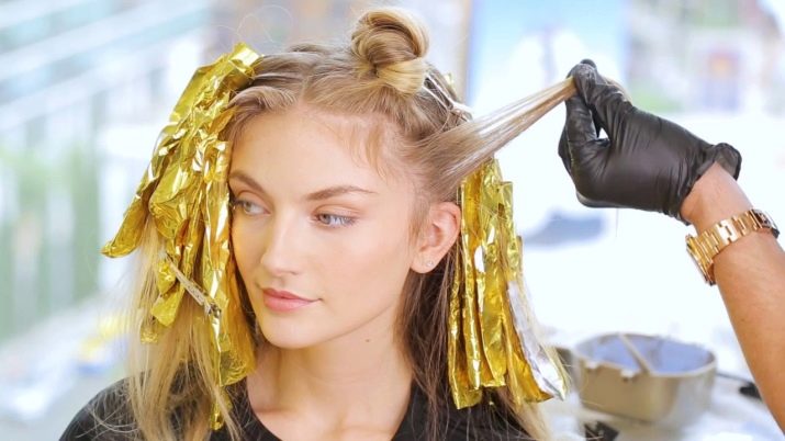 เมื่อไฮไลต์มันเป็นสิ่งจำเป็นที่จะแบ่งผมออกเป็นล็อคเล็ก ๆ และรักษาความปลอดภัยด้วย hairpins สิ่งนี้จะช่วยให้คุณสามารถประมวลผลองค์ประกอบของแต่ละส่วนแยก
