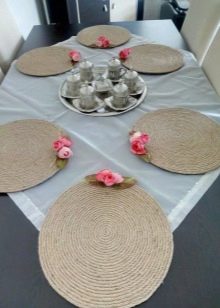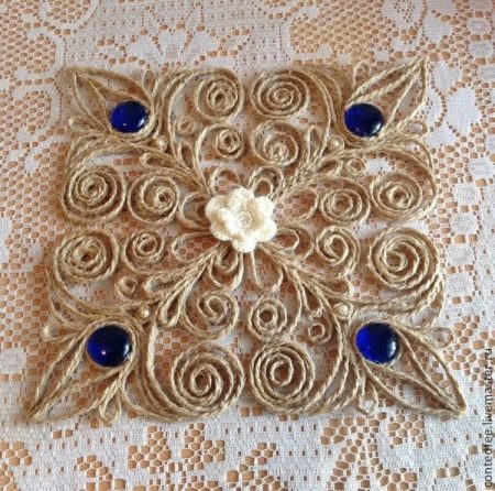 Jute (jute twine) เป็นเชือกเส้นเล็กที่มีทักษะที่จำเป็นคุณสามารถสร้างผลงานศิลปะที่แท้จริง บ่อยครั้งที่ผ้าเช็ดปากแบบพิเศษสำหรับร้อนทอจากปอ