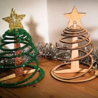 - หลังจากนั้นคุณสามารถทำการตกแต่งต้นไม้โฮมเมดได้อย่างปลอดภัย อาจมีหลายตัวเลือกสำหรับลักษณะของผลิตภัณฑ์โฮมเมด ตัวอย่างเช่นปล่อยไว้ในรูปแบบดั้งเดิมอย่าทาสีและอย่าเพิ่มอะไรเลย และคุณสามารถครอบคลุมเฉพาะเคลือบเงาพิเศษถ้าคุณต้องการผู้เชี่ยวชาญหลายคนไม่ปล่อยให้ผลิตภัณฑ์เรียบเกินไปพวกเขาทาสีทั้งดาวของต้นคริสต์มาสและต้นไม้เอง ส่วนใหญ่มักจะใช้สีมาตรฐานสำหรับสิ่งนี้ หากคุณต้องการทำให้การออกแบบดูหรูหราและรื่นเริงยิ่งขึ้นสีชั้นบนสุดจะทำให้โรยด้วยประกายเงางามจำนวนเล็กน้อยในเฉดสีที่คุณชื่นชอบ นอกจากนี้การออกแบบโฮมเมดสามารถตกแต่งด้วยมาลัยสีโปรดของคุณ