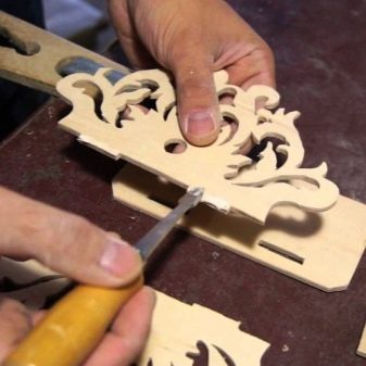 - รายละเอียดเล็ก ๆ ที่จะอยู่ในการก่อสร้างของต้นไม้อัดจะแนะนำให้ตัดด้วยจิ๊กซอว์ บ่อยครั้งที่ช่างฝีมือใช้เครื่องมือมือไฟฟ้าเนื่องจากการทำงานกับมันง่ายขึ้นและเร็วขึ้น