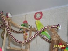 Budgies ในประเทศจะมีความสุขที่ได้เล่นเป็นเวลาหลายชั่วโมงบนเชือก ทันทีที่พวกเขาหยุดปีนเชือกกลับไปกลับมาก็ถึงเวลาพักแล้ว นกแก้วสามารถปิดในกรงและเชือกออกจนกว่านกเดินต่อไป เชือกชนิดเดียวกัน แต่เล็กกว่านั้นสามารถแขวนไว้ในกรงนกได้