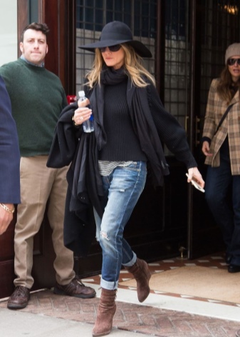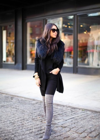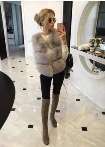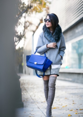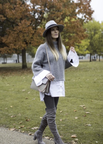 รองเท้าสีเทากลางและสงบรวมกับชุดเกือบทั้งหมด สิ่งที่น่าตื่นเต้นที่สุดคือการผสมผสานกับกางเกงยีนส์และกางเกงขาสั้นเสริมด้วยเสื้อสเวตเตอร์และเสื้อเบลาส์ กางเกงยีนส์สามารถแทนที่ด้วยกางเกงหรือกระโปรงตรงในสีคลาสสิก ชุดที่มีรองเท้าบู๊ตสีเทาสามารถตกแต่งด้วยหมวกและกระเป๋าถือสีเบจ, ขาว, เทา, น้ำตาล, ดำและแดง