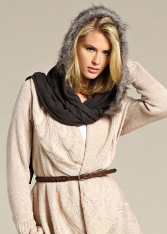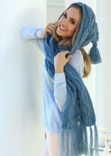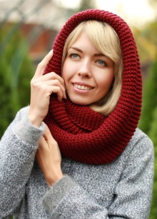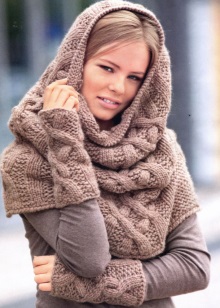 - ในคอลเล็คชั่นแฟชั่นผ้าพันคอถักนิตติ้งสามารถนำเสนอในหลากหลายรูปแบบ: ในรูปแบบของผ้าใบทั้งหมด, สายผูกผม (ผ้าพันคอที่ไม่มีที่สิ้นสุด), ปอนโช