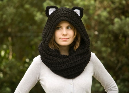 รายการโปรดของฤดูกาลคือรุ่นที่มีหู รูปร่างของหูนั้นมีความหลากหลายมาก: จากง่ายไปจนถึงแฟนตาซี ผ้าพันคอฮู้ดกับ braids จะเป็นจุดสิ้นสุดที่ยอดเยี่ยมของวงดนตรีที่มีแจ็คเก็ตหรือแจ็คเก็ตลง ในฤดูกาลนี้เทรนด์การถักนิตติ้งขนาดเล็กมีหลายสีให้เลือก รุ่นได้รับการตกแต่งด้วยการรวมกันของสามเฉดสีเดียวกัน