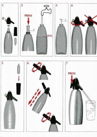 หากคุณตัดสินใจที่จะตุนอุปกรณ์ดังกล่าวคุณต้องจำไว้ว่าคุณต้องซื้อขวดที่ผลิตโดยผู้ผลิตรายเดียวกันกับกาลักน้ำเอง หากคุณละเลยกฎนี้คุณอาจประสบกับความจริงที่ว่าความจุไม่เหมาะสม เมื่อทำงานกับรุ่นนี้คุณไม่ควรหักโหมกับน้ำเพราะเทลงในส่วนที่เกินกว่าที่กำหนดจึงมีความเสี่ยงที่จะเติมน้ำทั้งห้องที่คุณทำน้ำมะนาว นอกจากนี้ความดันที่เกิดขึ้นระหว่างการเตรียมโซดาอาจทำให้ระบบทั้งหมดทำงานผิดปกติ